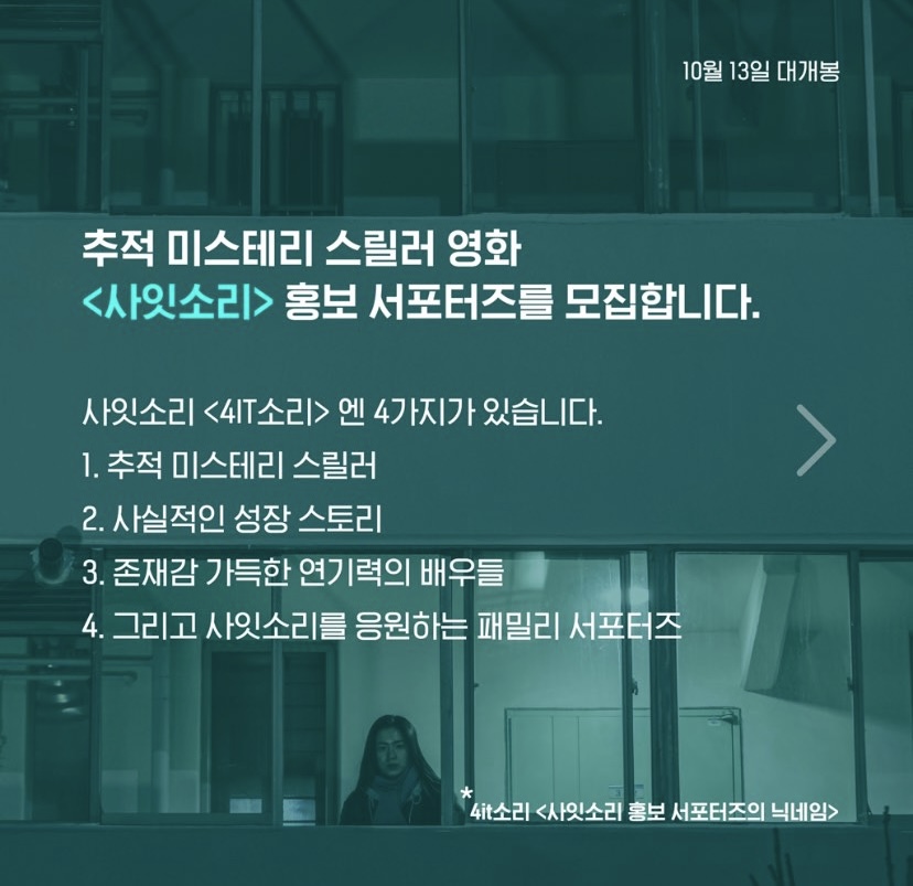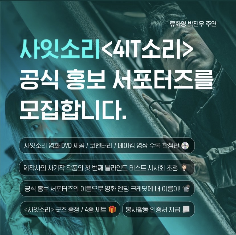 류화영 , 박진우 주연의 영화 '사잇소리'에서 활발히 활동해주실 서포터즈를 공개 모집합니다!